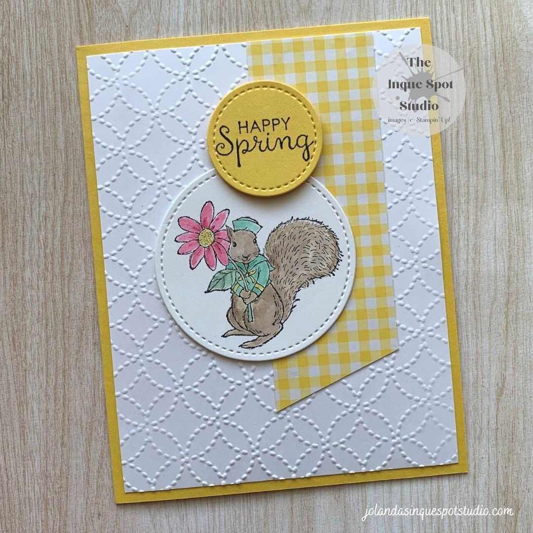 Enjoying a lovely Spring morning in the Studio. As mentioned, March seems to be the month for Spring themes and color challenges. I’m game, let’s play! Sketch / Technique: Try Stampin’ On Tuesday (#544), Color: Just Add Ink (#593), Tools: Can You Handle the Pressure (#2) and Technique: Happy Little Stampers – Watercolor (March). HereContinue reading “Fable Friends – Happy Spring”