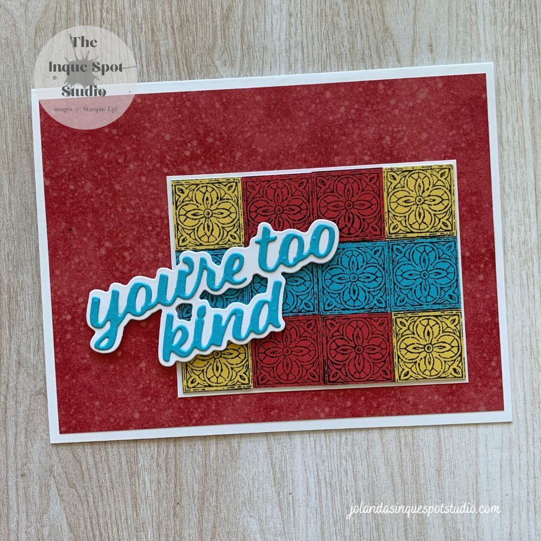 Welcome back! How can it already be September? Are you looking forward to Fall? Playing with two challenges: Cupcake Inspirations (#576) for the colors and Sunday Stamps (#316) for the layout. Here is the result: Steps: All elements were adhered to the card base to resemble the sketch with the Sentiment popped up with Dimensionals.Continue reading “Timeless Tiles – You’re Too Kind”