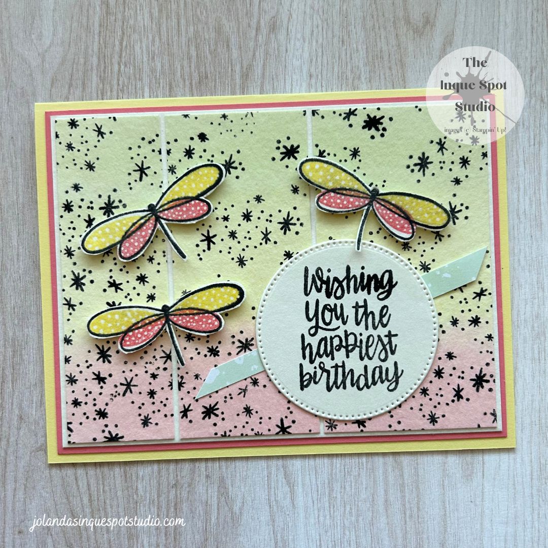 Welcome back! Friday already…hope you have some fun weekend plans. Play time! Cupcake Inspirations (#601) is featuring Insects and I chose one of the prettiest. I selected the color line-up from CAS Colours & Sketches (#544) and the sketch suggested by the Facebook Global Design Project (#462) team to complete my card. Here is theContinue reading “Dragonfly Garden”
