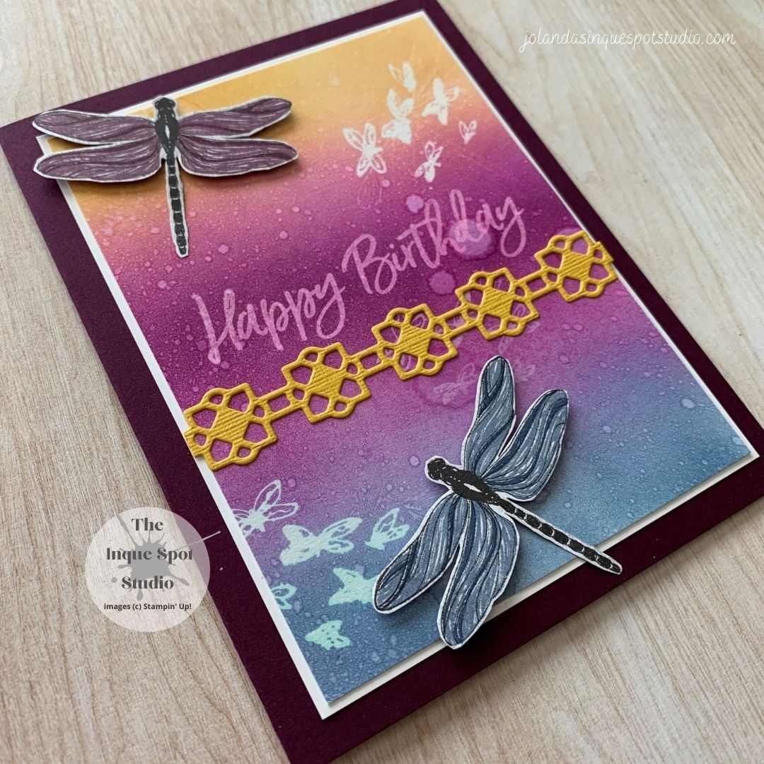 It is another Challenge Mash-Up day! Global Design Project – GDP274 Sketch, The Paper Players – PP523 Color and The Spot – #145 Splish Splash Challenges. This is what I created… I started with a piece of Basic White – Thick card stock. I stamped the sentiment, Happy Birthday, from the new Sweet Ice CreamContinue reading “Dragonfly Garden – Birthday”