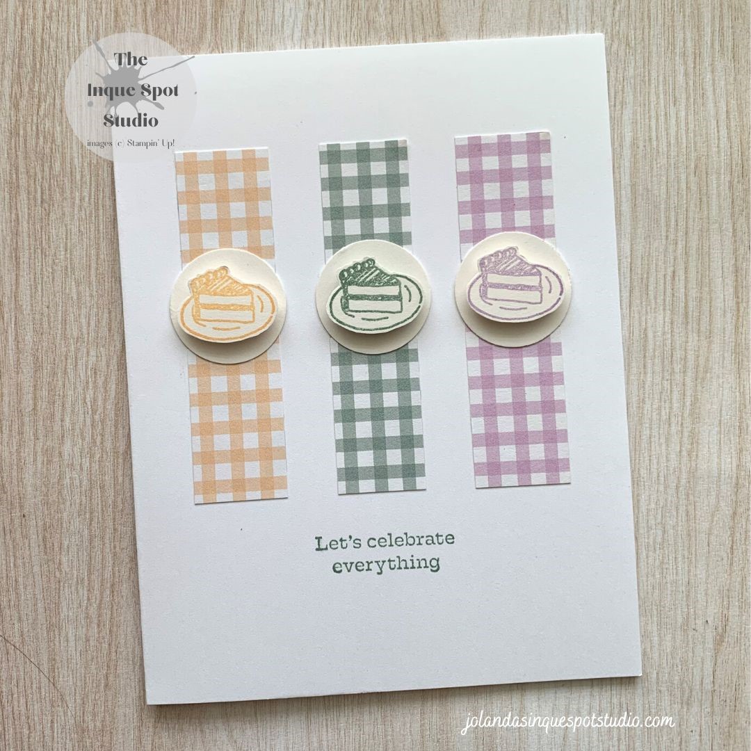 More treats! Cake, anyone? Let’s take a break from our Holiday shopping and have something sweet to eat… Keeping it clean and simple for AAA Cards (#229) with colors from Color Dare (#524) and sharing with Ellibelle’s Crafty Corner for December. Here is the result: Steps: All elements were arranged and adhered with the CakeContinue reading “Diner Cake Slice – Let’s Celebrate”