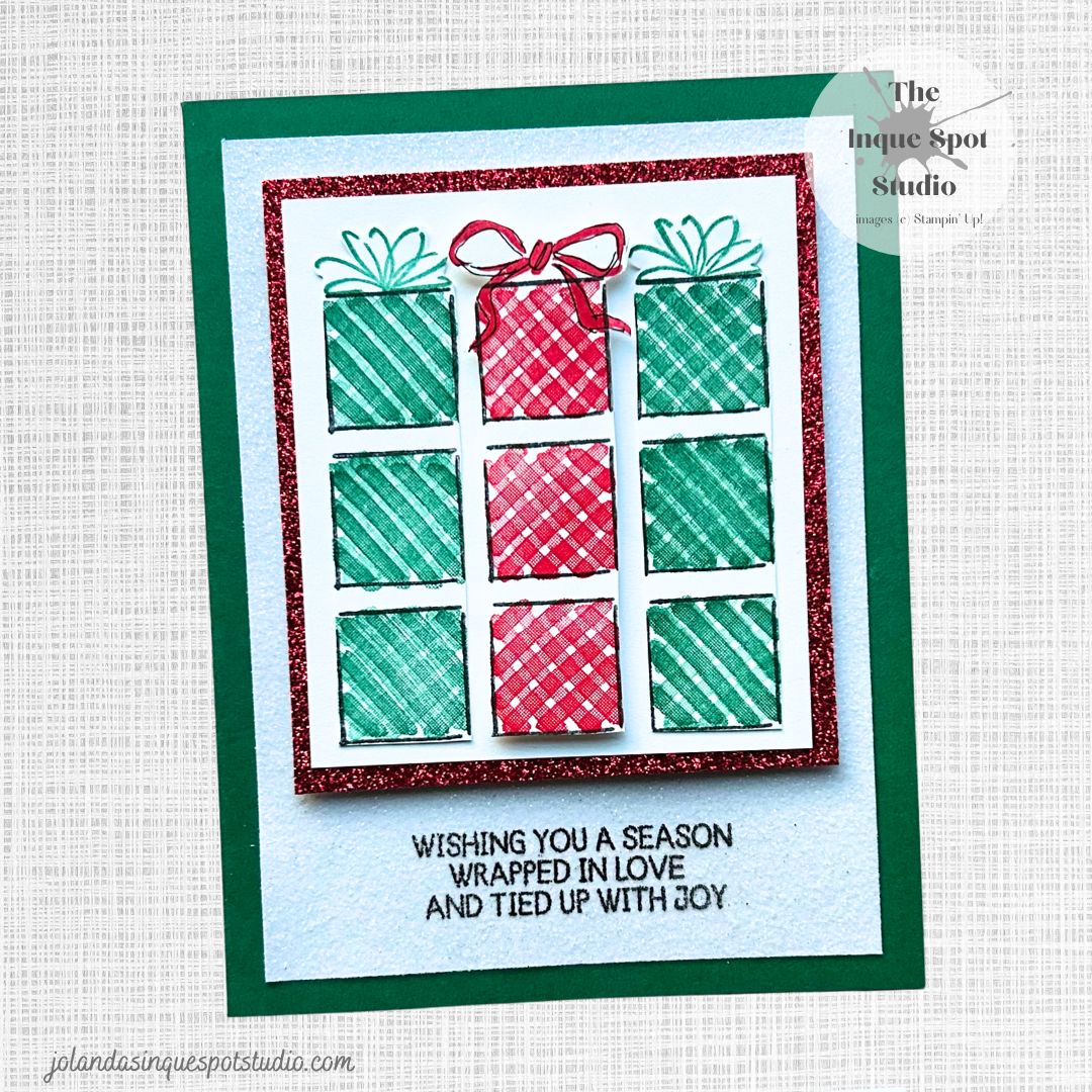 Welcome back! Already Thursday…holiday chores have kept me hopping today. I had a chance to get into the Studio late in the day to play with the following challenges: Paper Players (#767) Gifting; Tic Tac Toe (#285) Right Vertical Line – Bow, Square and Sparkle; Paper Craft Crew (#651) Inspiration Photo; and Krafty Chicks (#798)Continue reading “Gift of Joy – Wrapped in Love”