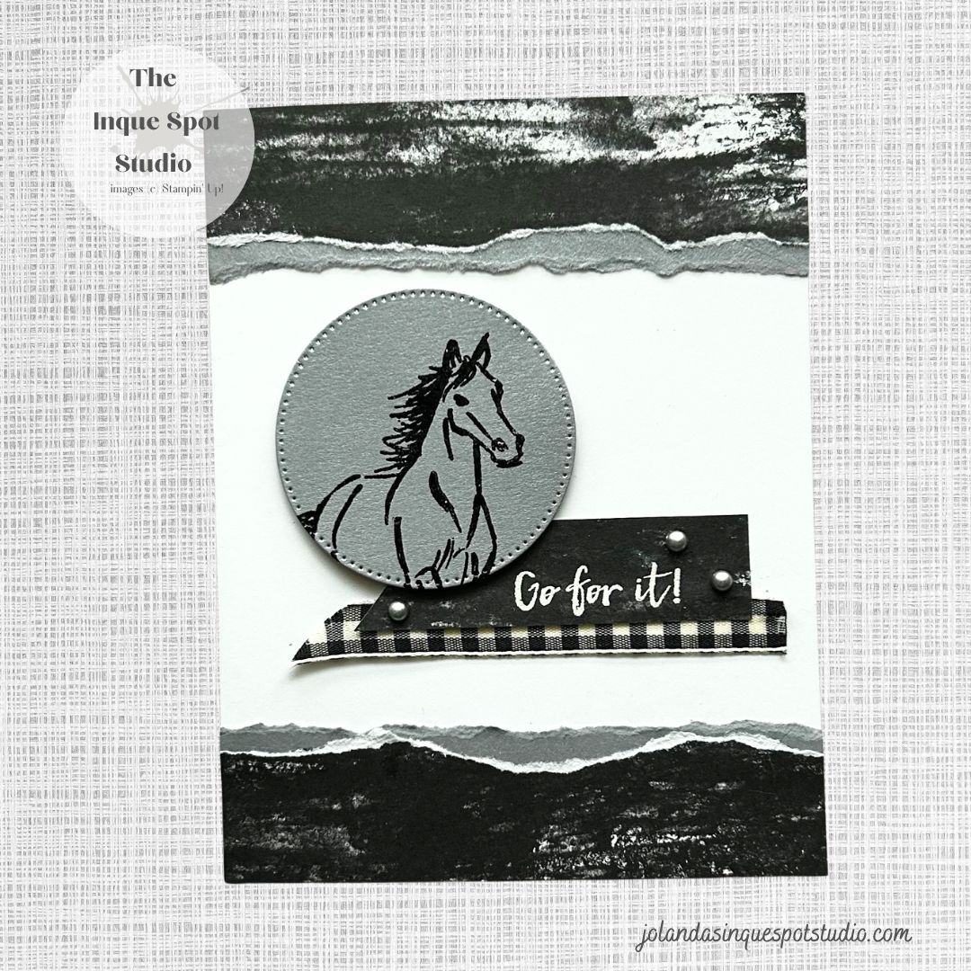 Design Team Time: This round at Hand Stamped Sentiments (#473), we have a cool sketch. My design choices were influenced by: Festive Friday (#194) with a list of options and Time Out (#298), with another list of options. Here is the result: Steps: All elements were adhered to the card base to resemble the sketch. Continue reading “Let It Ride – Go For It”