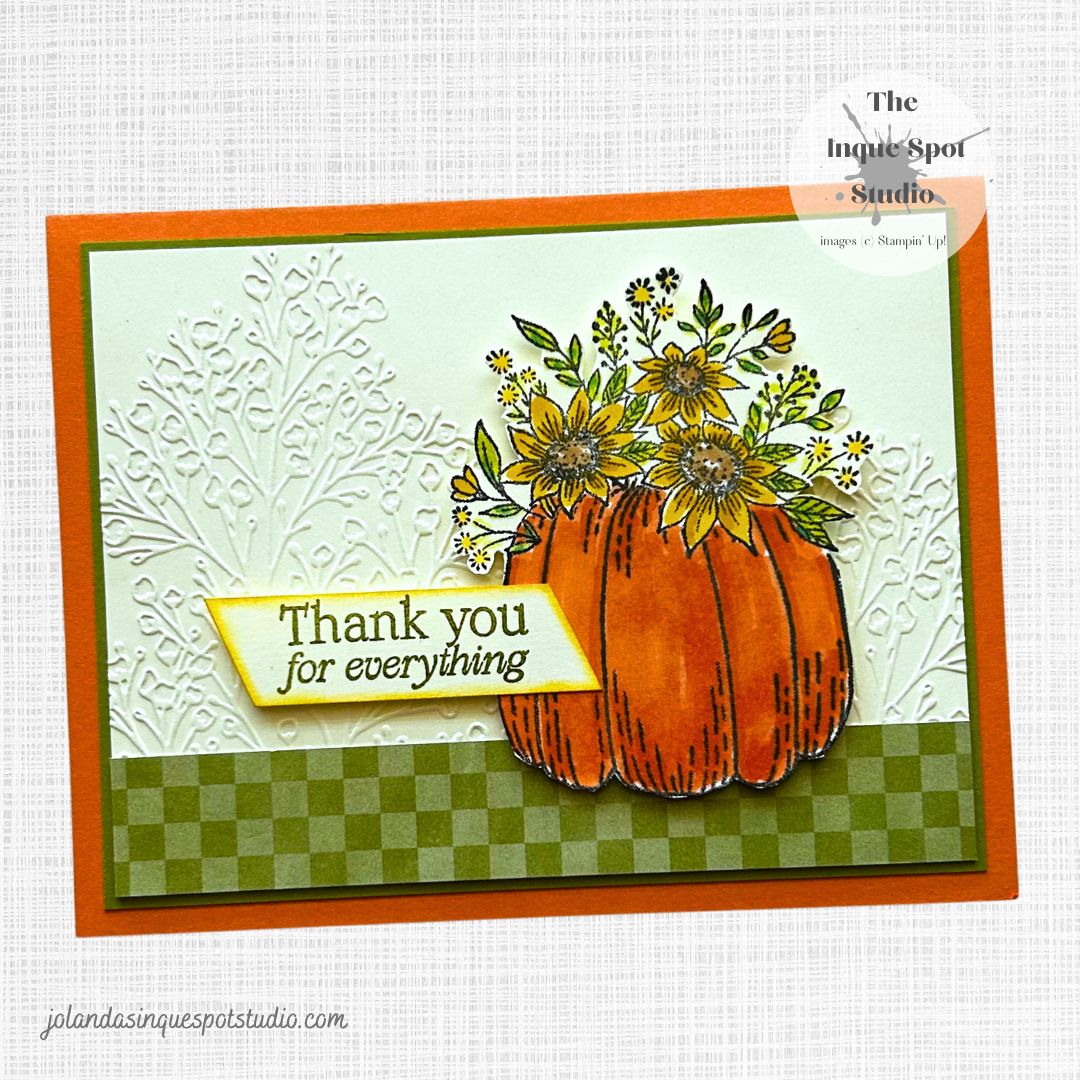 Welcome back! Happy Sunday… I am playing with: Alphabet (Letter P) for Pumpkin; Color Dare (#677) Orange & Green plus one – Crushed Curry; and the Sunday Stamps (#373) Sketch to bring everything together. I am also sharing with Paper Craft Crew (#647) to pick three colors from the inspiration photo. Here is the result:Continue reading “Hello Harvest – Floral Pumpkin Thank You”