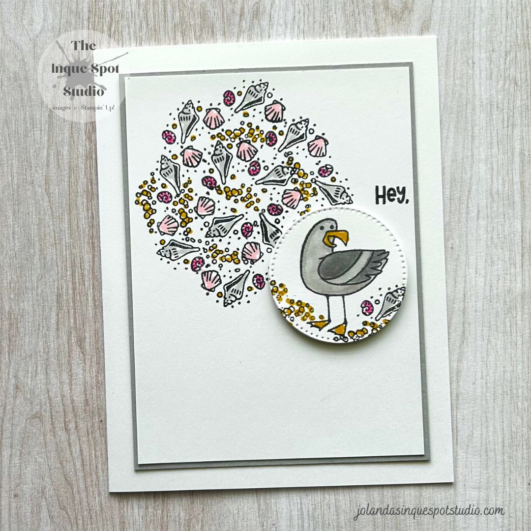 Hi again. I have a quick clean and simple card for you this afternoon… Inspired By (#323) features a Spiral with the colors Crushed Curry, Melon Mambo, Bubble Bath and Smoky Slate and my Spiral is created with Seashells. I chose the CAS Colours & Sketches (#554) Layout, so I could include the Seagull onContinue reading “Friendly Seagulls – Hey”