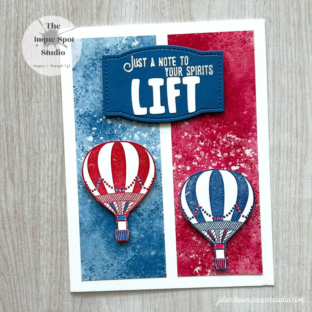 Welcome back! Happy Thursday. A fun card for you today… Playing with the current color suggestion from Color Hues (#116) for Blue & Red along with the Paper Players (#752) sketch. Additional design influences: Make My Monday (#259) for Hot Air Balloons and adding die-cut letters for Facebook’s Global Design Project (#511) suggestion. Here isContinue reading “Lift Me Up – Just a Note”