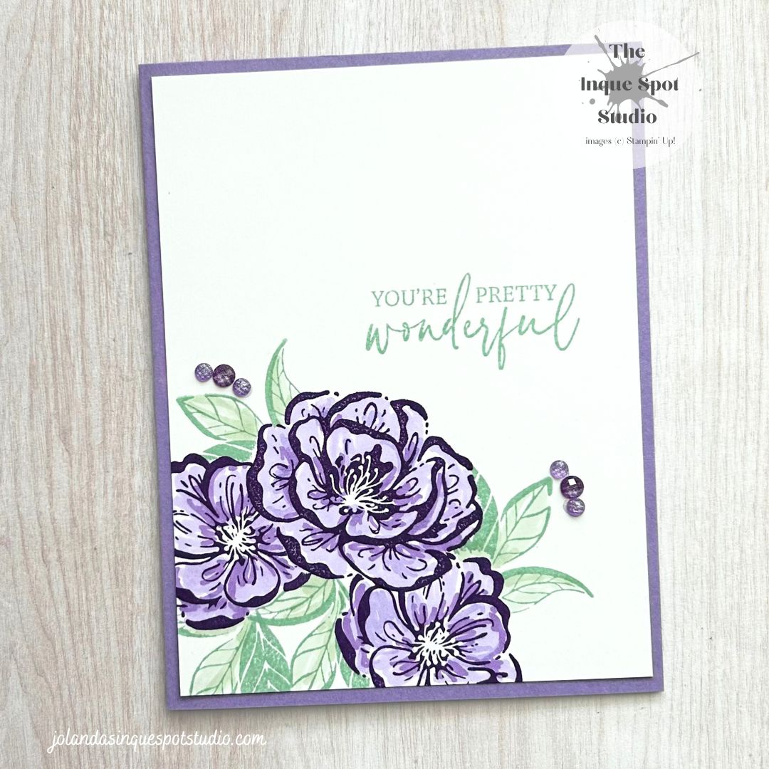One more time! Another deadline looms… For: The Flower Challenge (#106) Sketch; Color Dare (#669) Palette of Light Green and Purple; and sharing with Crafter’s Café (#323) Twist – Flowers. Back to my favorite clean and simple style. Here is the result: Steps: That is pretty much it! A few Purple Fine Shimmer Gems wereContinue reading “Irresistible Blooms – Wonderful You”