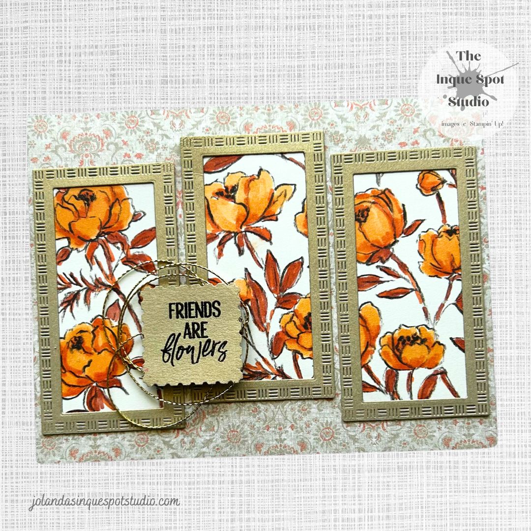 Welcome back! It is good to be back in the Studio… Today’s Challenges: As You See It (#359) Recipe Ingredients; Festive Friday (#195) choosing Gold Foil, Metallic Thread, Embossing and Cream Coloring; Time Out (#299) for Gilded Frames and Antique Styling; and bringing it all together, the Sunday Stamps (#371) Sketch. Here is the result:Continue reading “You Are Remarkable – Friends Are Flowers”