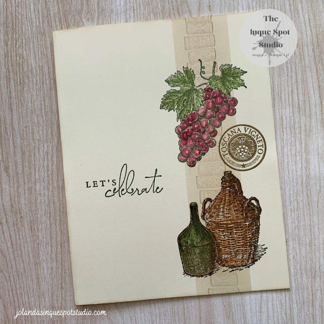 The challenge theme for the FUSION sketch is Wine & Cheese. How appropriate as we visited a winery yesterday. I selected the retired stamp set, Tuscan Vineyard, to play with. I chose to create another one-layer clean and simple card for the INKspirational (#271) challenge and did a bit of Blender Pen water coloring soContinue reading “Splendid Thoughts – Let’s Celebrate”