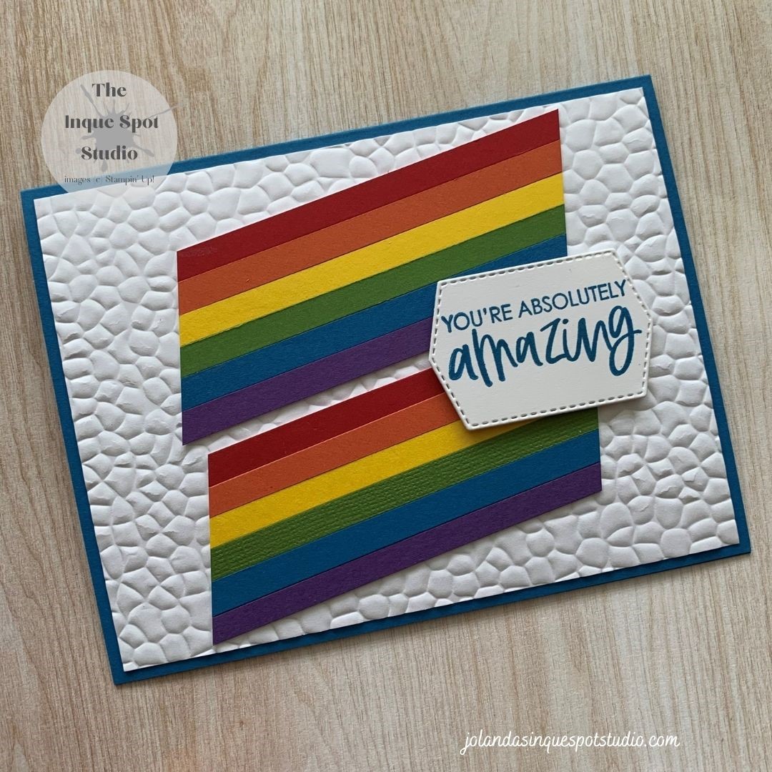 With pride, I dedicate this card to many of my friends… Strong and resilient as Hammered Metal, you move through the world with grace and kindness. Each of you unique. I love you and you are truly amazing! Steps: Colored Strips of cardstock were sourced from my storage bins and trimmed (4” x ¼’) inContinue reading “Color & Contour – You’re Absolutely Amazing”