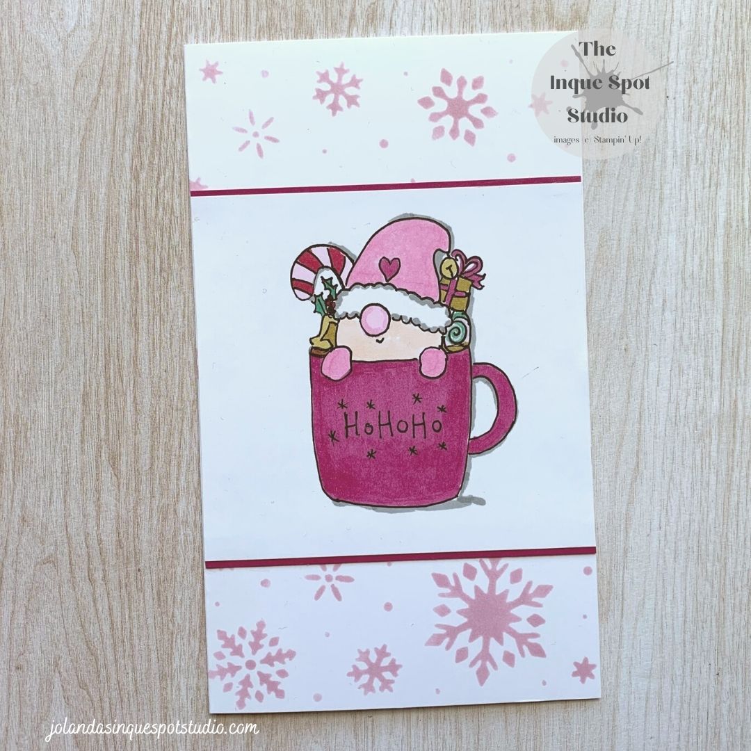 How about a Christmas card to switch things up? Playing with Jingle Belles (2321) for the October Breast Cancer Awareness Color Pink and chose Caffeinated Christmas (#22) for the subject image. Sharing with Krafty Chicks (#685) and Happy Little Stampers (October) selecting the Slim Line card layout from CAS Colours & Sketches (#523). Here isContinue reading “Pink Christmas Coffee Gnome”