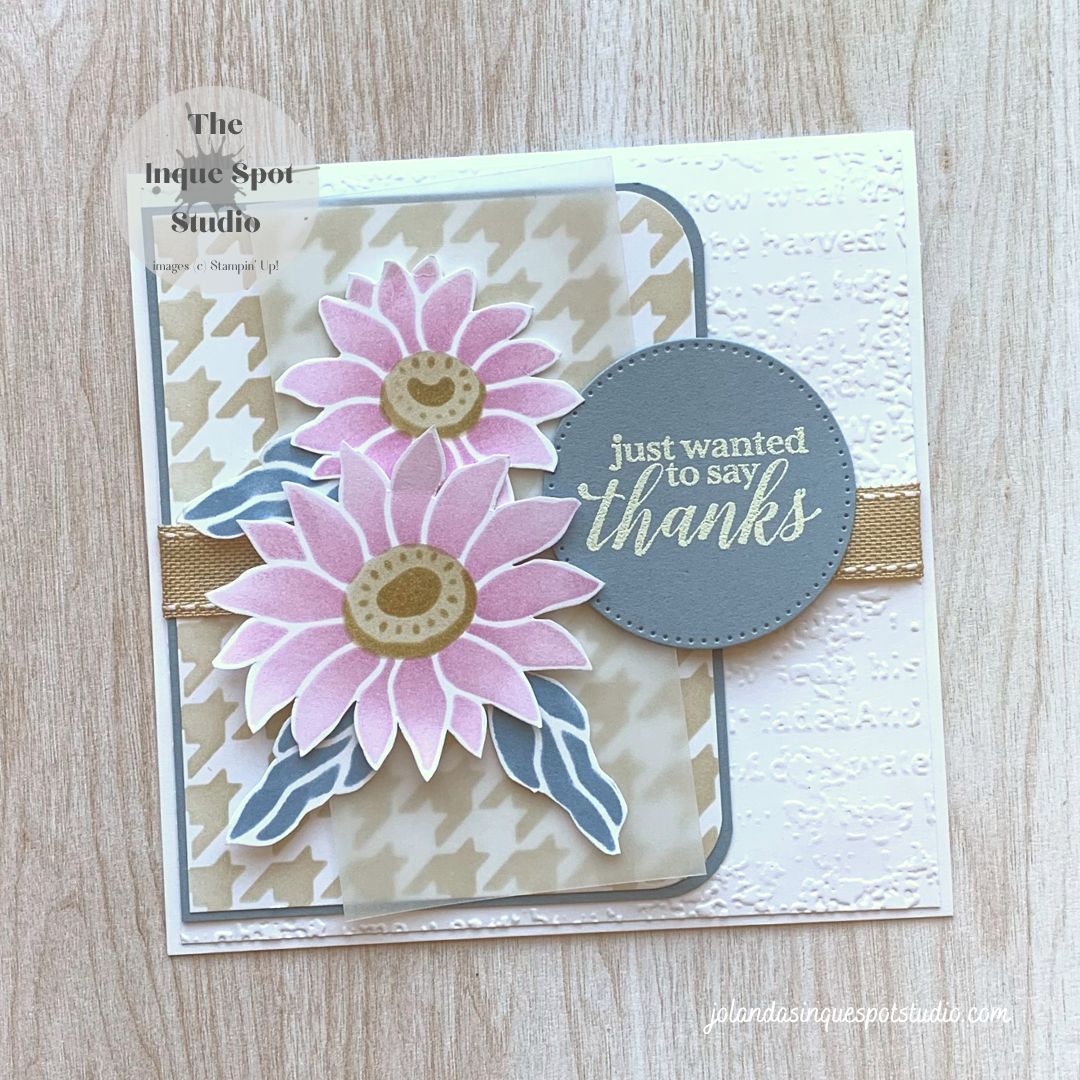 It’s Monday…the start of a brand-new week! Taking a break from Christmas cards, I have a pretty thank you card today. The challenges: Just Us Girls (#705) for the Word of the Week; Creative Colour (#115) for the color palette; Freshly Made Sketches (#611) for the layout; and I am sharing with Happy Little StampersContinue reading “Abundant Beauty – Thanks”