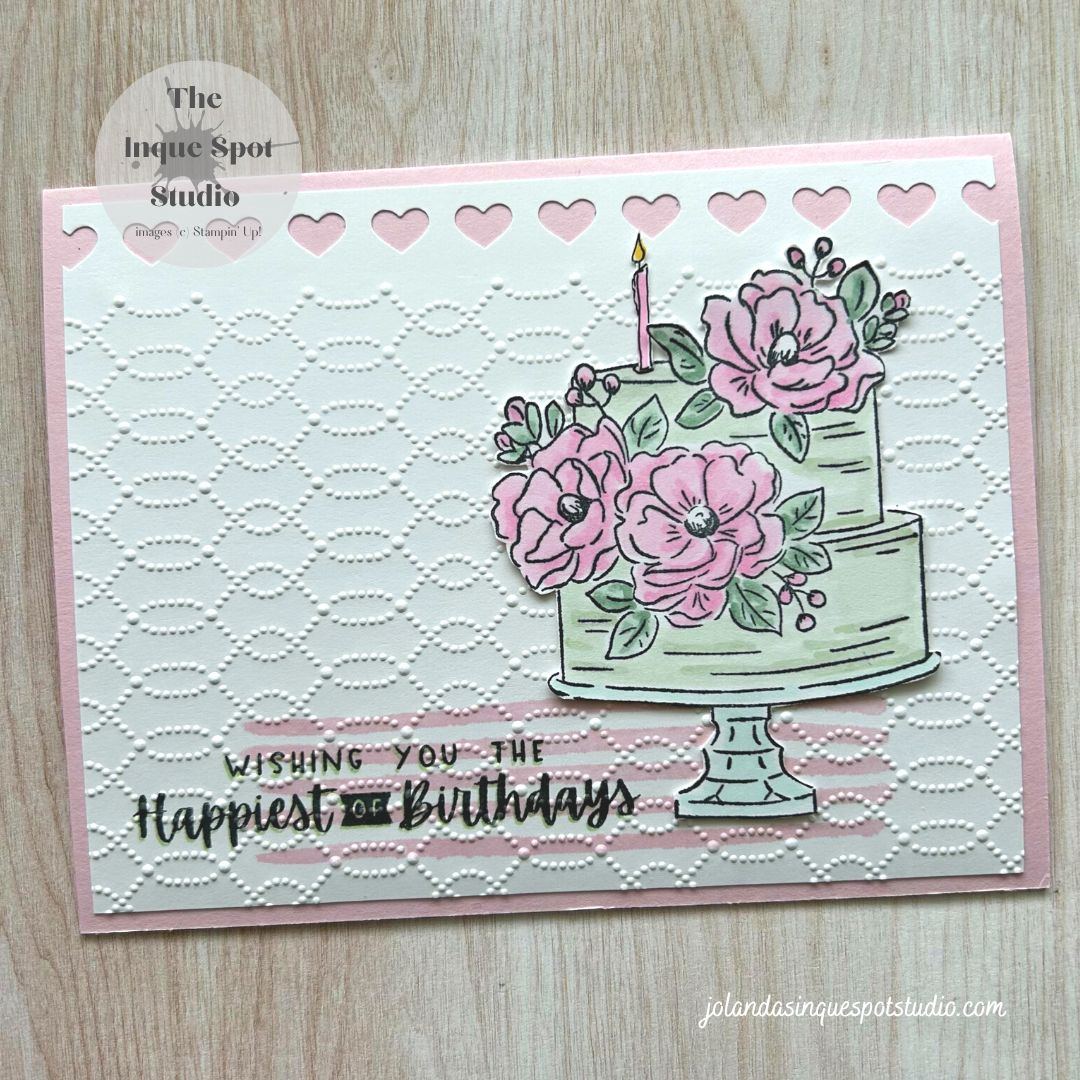 Catching up with a challenge or two…and playing with the Mood Board over at INKspirational (#310) incorporating elements from the Heart’s Quest (#49) A & B themes and bringing these ideas together with the current Tuesday Morning (#746) Sketch. Here is the result: Steps: The Cake was set to the right to accommodate the greetingContinue reading “Floral Cake – Happy Birthday”