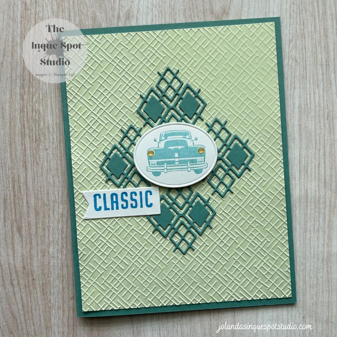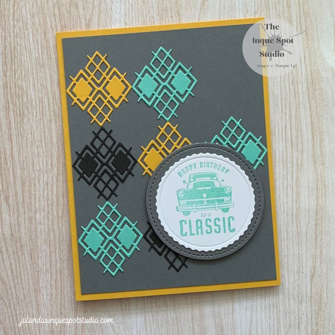 Welcome back! Happy Sunday… Today, I am playing with a stripped-down version of the Atlantic Hearts (#586) Sketch and the colors suggested by Retro Rubber (#235) for a fun little guy card. My color translation: Soft Sea Foam; Lemon Lolly; Daffodil Delight; Azure Afternoon; Lost Lagoon; and Balmy Blue. Here is the result: Steps: AllContinue reading “He’s All That – A Classic”