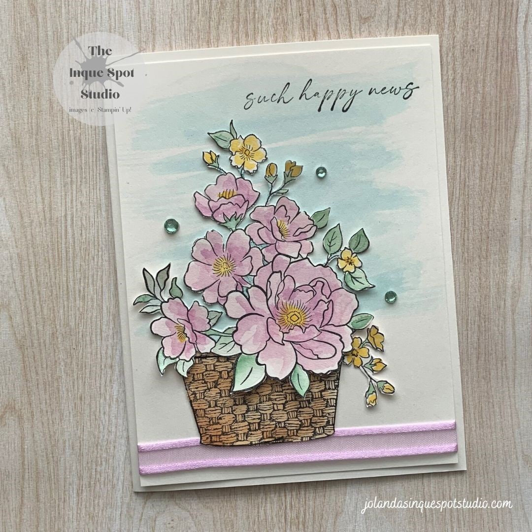 Our current challenge at HANDSTAMPED SENTIMENTS (#384) is Color. Such a pretty mix, this time around… I picked one of my favorite retired stamp sets, Lovely Lattice, for the Tic Tac Toe Challenge (#151) for subject, theme and technique and water-colored the image for the Happy Little Stampers March Watercolor Challenge. The Spring theme wasContinue reading “Spring Floral Basket – Such Happy News”
