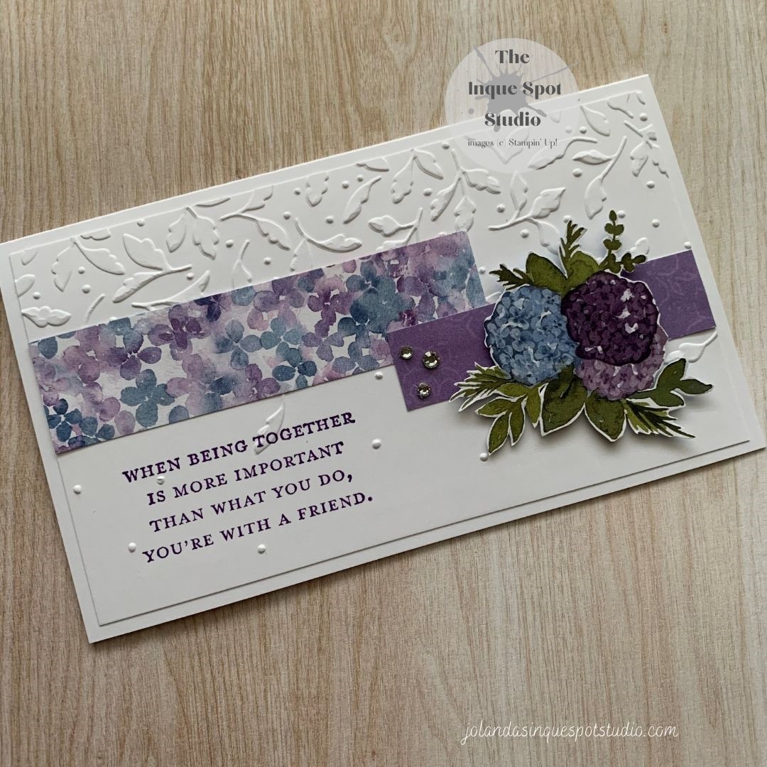 Friends – How we miss them. So glad many have had their Covid-19 Vaccinations and we will be able to get together again soon. Loyal Leaves is a favorite stamp set. It was always special when I found a leaf skeleton. However, today I just used the sentiment Missing You. I love the font. TheContinue reading “Missing You – Loyal Leaves with Hydrangea Hill”