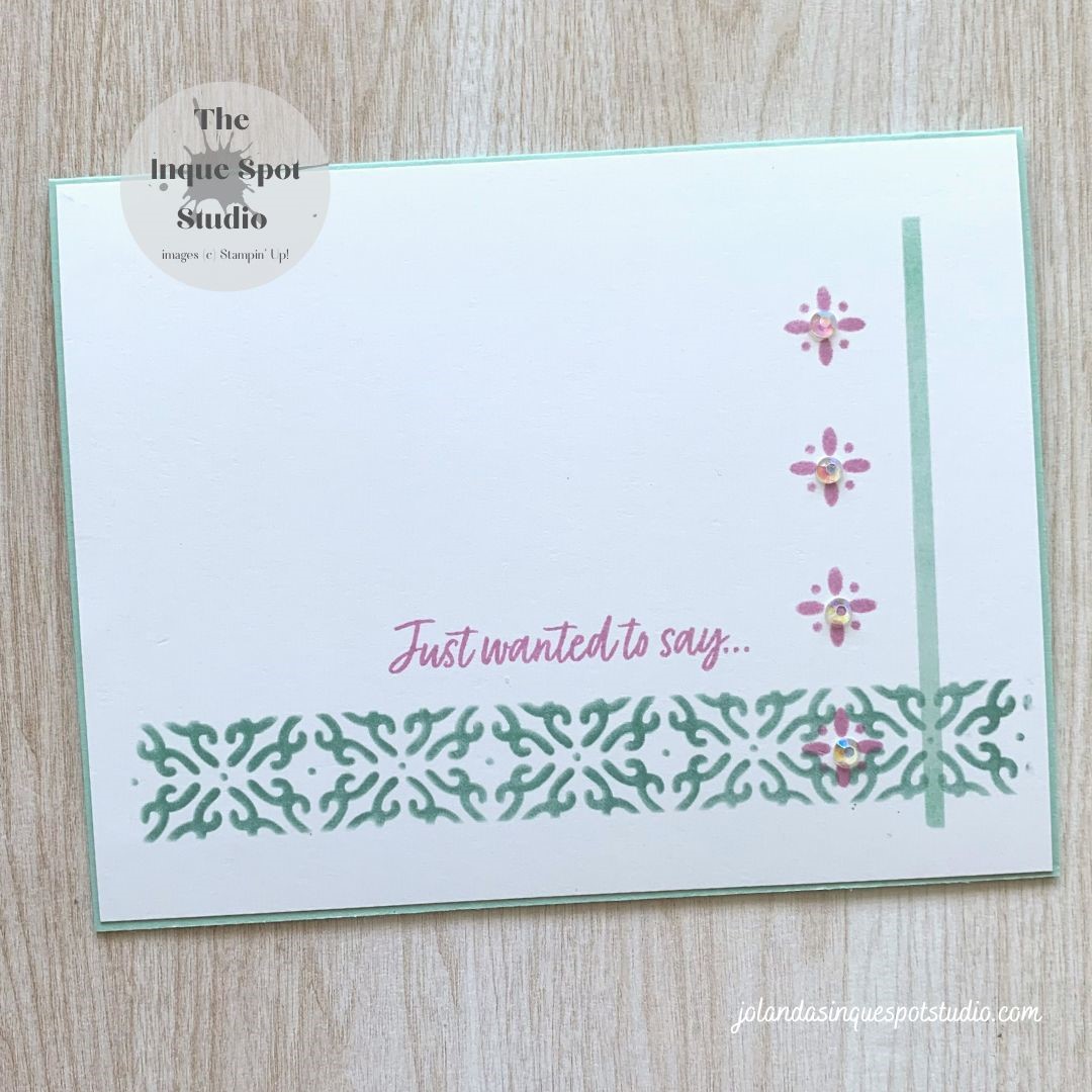 Welcome back! A quick clean and simple card for today. Mixing up a the Just Add Ink (#664) colors with the cool sketch from Freshly Made (#597) using Stencils for Happy Little Stampers (August). Here is the result: Steps: Add a bit of bling – a few Iridescent Rhinestone Basic Jewels to the Floral elementsContinue reading “Eclectic Stencils – Just Wanted To Say…”