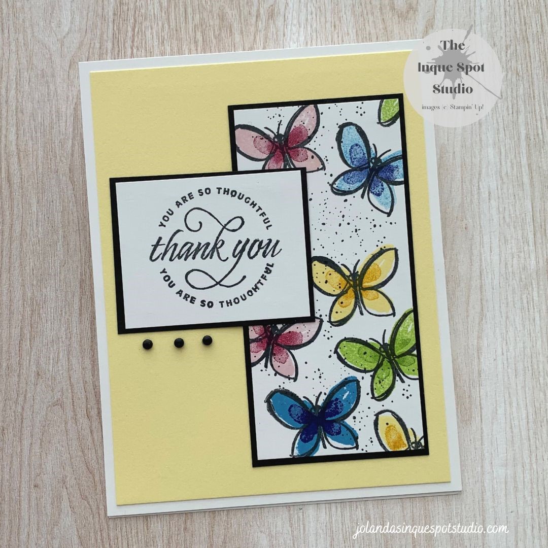 Wow! It is already Thursday…time just flies. Playing in the Studio with a few challenges: Alphabet (Letter E) for an Easel card; so why not, Creative Creases (#58) for Fun Fold cards; selecting the Summer Bright colors suggested by Facebook Colour INKspiration (#144); and bringing it all together with the flipped Try Stampin’ On TuesdayContinue reading “Butterfly Thank You”
