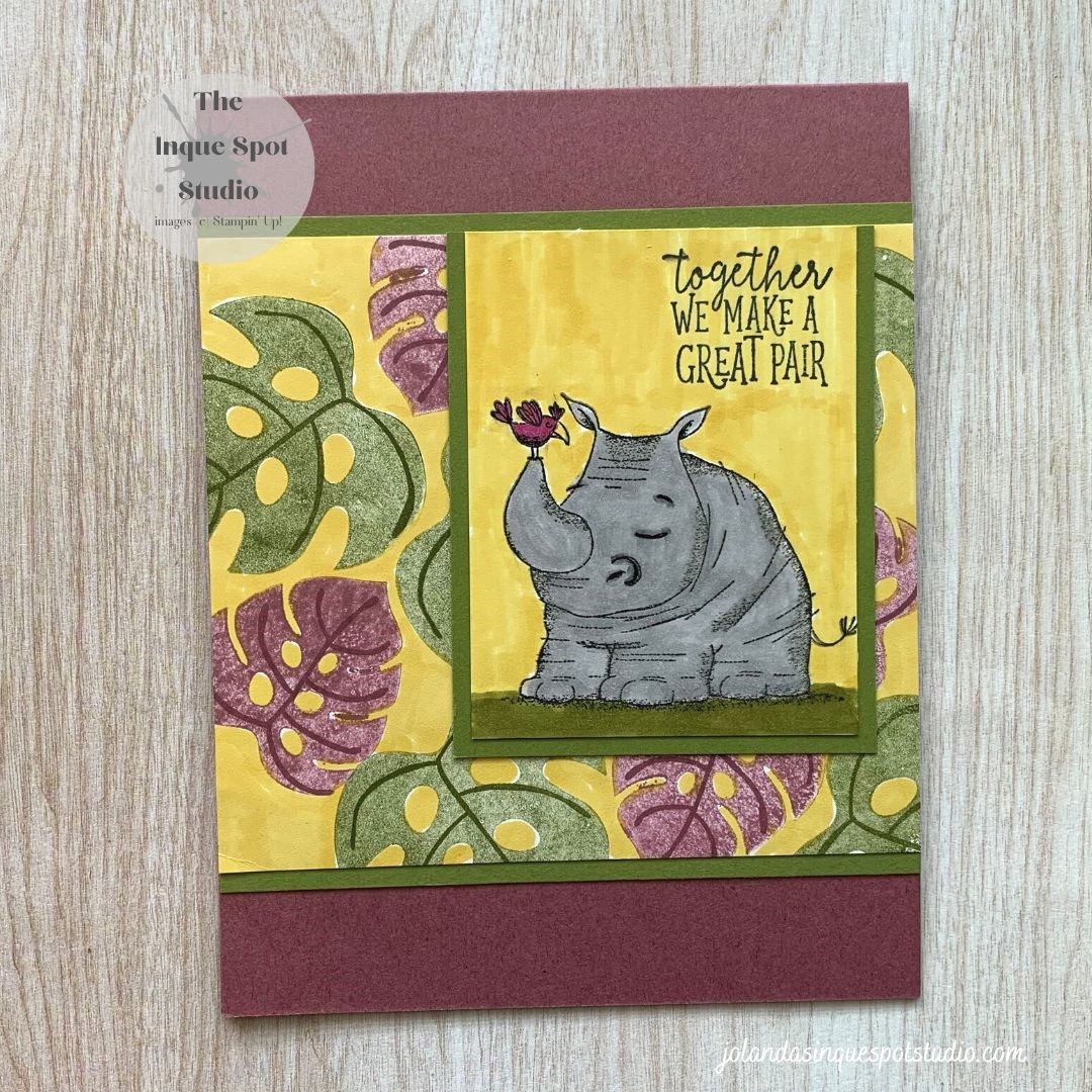 One more for today! How about a trip to the Jungle? The theme for “J” at the Alphabet (Letter J) is Jungle Animals. I picked the colors suggested by the Facebook SU! Colour (August) group and brought the two together with the current sketch at Freshly Made (#599). Here is the result: Steps: All elementsContinue reading “Tropical Leaf – Animal Outing”