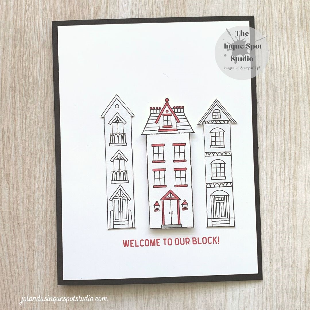 Another quick card for a few CAS (clean and simple) challenges. CAS on Friday (#256), Make My Monday (#200) and the Facebook SU! Colour choices for May. Here is the result: Steps: The Houses were adhered to the background panel with the center House popped up with Dimensionals. Black and White with a Pop ofContinue reading “In The City – Welcome”