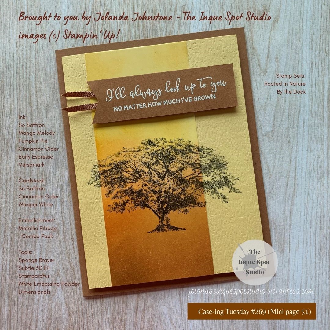 Choose a card sample from the Catalog and Case!September 15th – Tuesday Case-ing #269 (Mini Catalog page 51) This card features “Rooted in Nature” and “By the Dock”. The original sample in the catalog is a tone-on-tone color combo using one of my favorite stamp sets “Life is Beautiful”. I wanted to retain the tone-on-toneContinue reading “Aged Oak Wisdom”