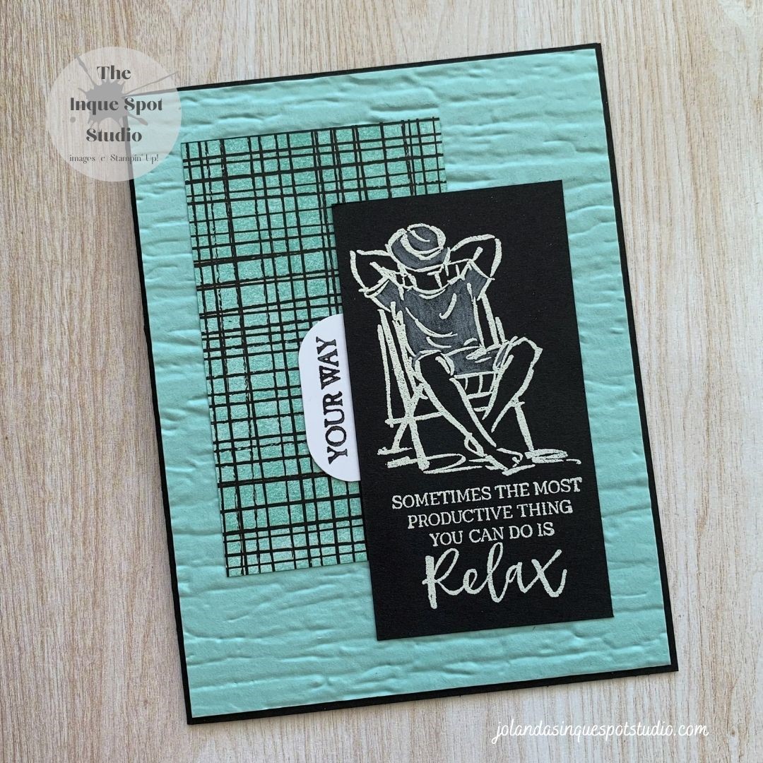 Our current challenge at CARDZ 4 GUYZ (#284) is to use Checks, Gingham and/or Plaid. By adding color to a black and white patterned piece of paper, you can make it work for any color scheme. For this card, I added Pool Party ink with a Brayer to the checked pattern found in the HostessContinue reading “In the Moment – Relax Your Way”