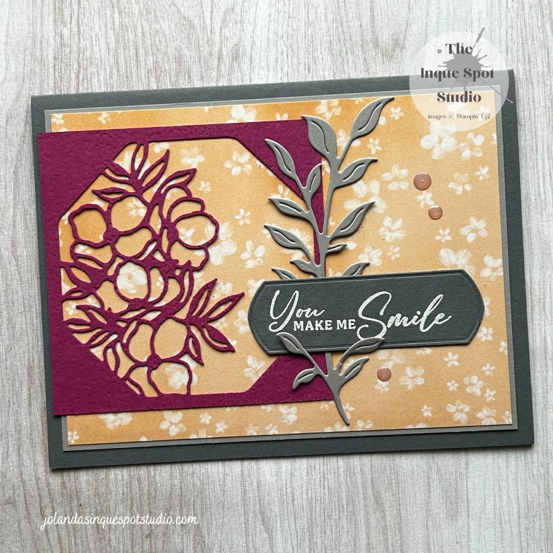 Welcome back! Time again for Facebook Case-ing Tuesday, where we CASE (Copy and Selectively Edit) cards found within Stampin’ Up!’s current catalogs. Today? The card can be found on page 13 of the 2025 Sale-a-bration Brochure. I flipped the card to a horizontal position swapping out the Banner Flag. Additional Influences: Just Add Ink (#734)Continue reading “Memorable Blooms – You Make Me Smile”
