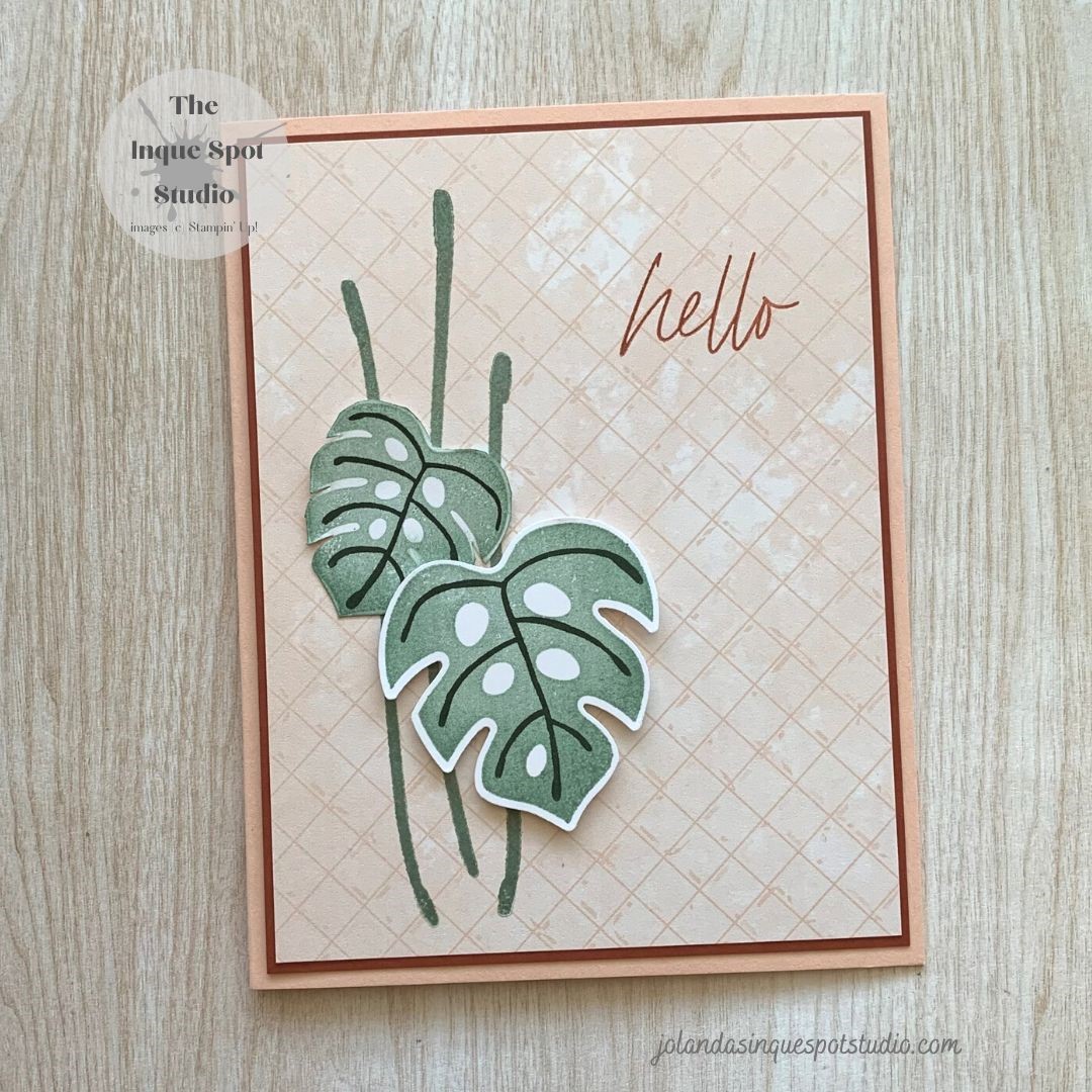 Welcome back! Every month, Stampin’ Up! presents a #SimpleStamping challenge. Simple Stamping = Just Stamps, Ink and Paper. The challenges sometimes include a few other parameters. For this month, use a punch and the sentiment, Hello. I chose to use the new Tropical Leaf Bundle available as an On-Line Exclusive. To meet this objective, IContinue reading “Tropical Leaf – Hello”