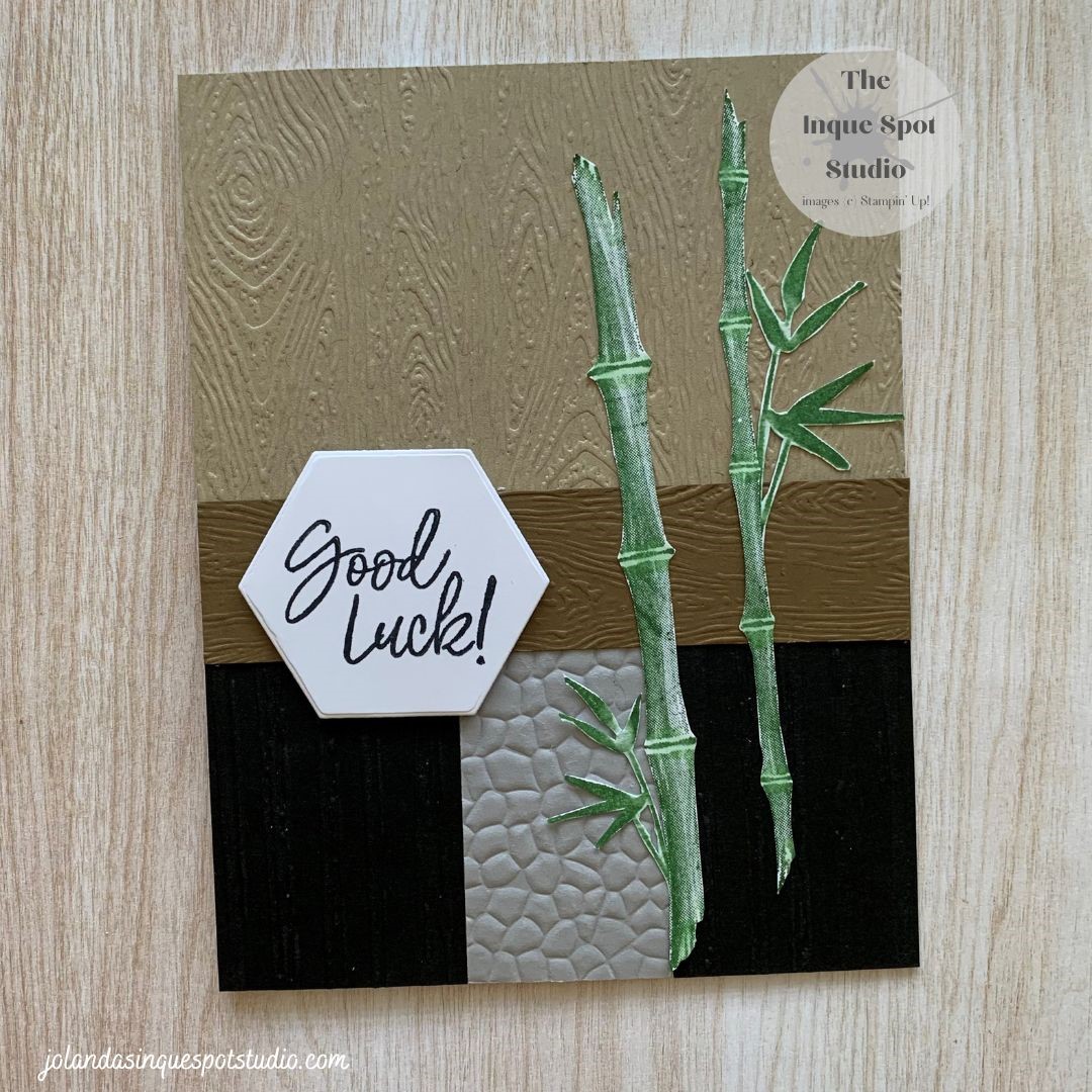 A brand-new week…what will you do with it? I am chasing a few deadlines as I ran out of time yesterday. Sketch: Freshly Made (#547), Inspiration: Just Add Ink (#615) and Colors: Color Throwdown (#704). Here is the result: Steps: Card Base: (8½” x 5½” scored at 4¼”) Basic White cardstock. Top Panel: (3” xContinue reading “Bamboo Beauty – Good Luck!”