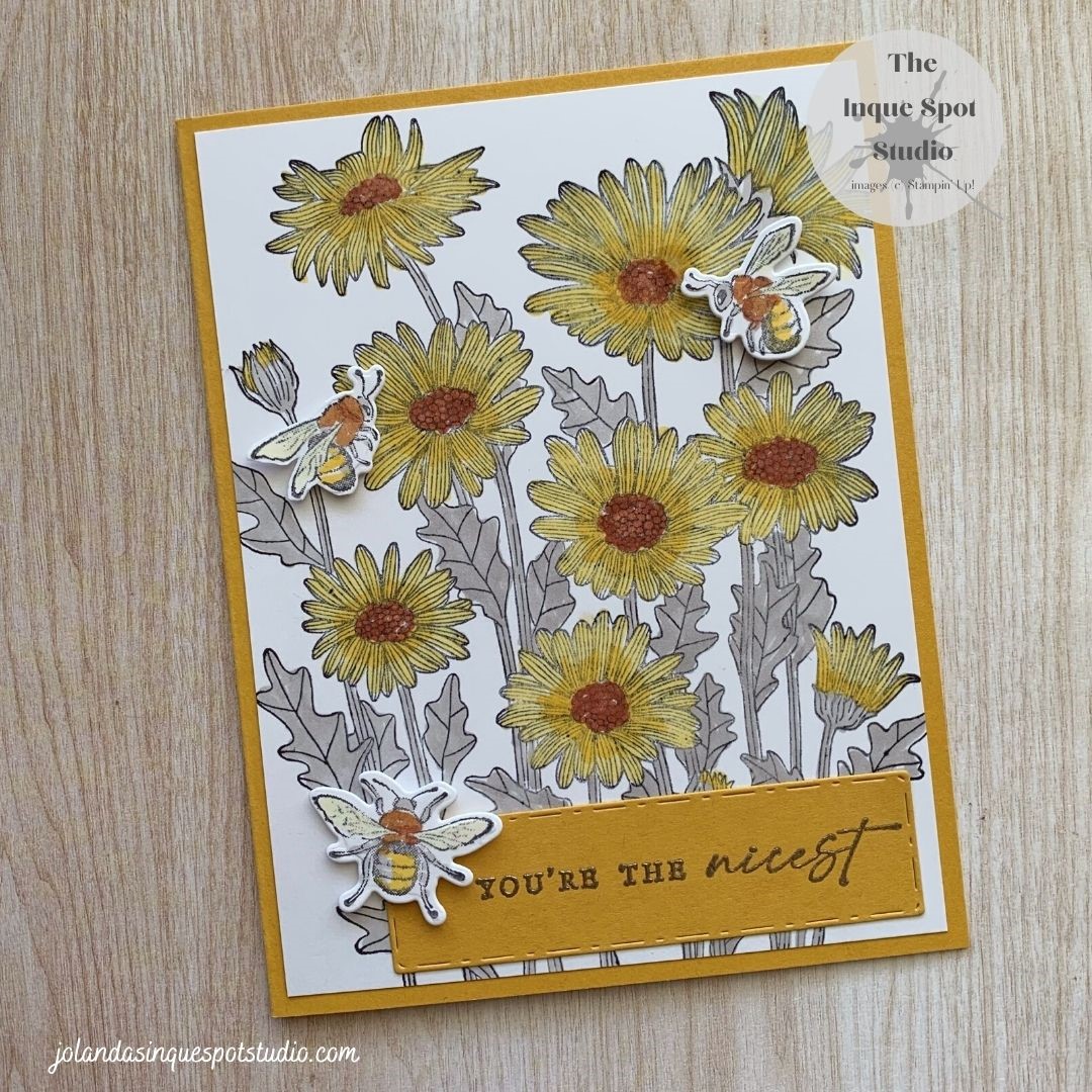 A couple of challenges just seemed destined to work together… A favorite color challenge of mine is the Facebook group – Colour INKspiration. The current colors (#115) are So Saffron, Bumble Bee, Cajun Craze and Gray Granite. Over at the Cookie Challenge (#165), the inspiration photo includes Bumble Bees, Daisies and similar colors. Here isContinue reading “Honeybee Home – You’re the Nicest”