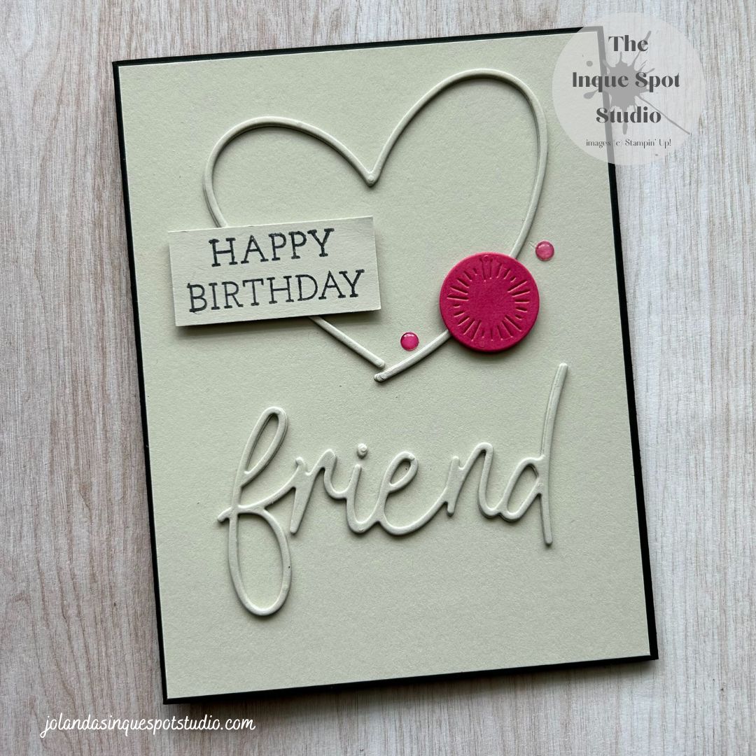 Good afternoon! Wednesday already…and I got out one of my favorite 2024 Holiday sets. Had a chance to play and I created a card for: Ellibelle’s I Spy (#21) and Stampin’ Up! Only (#365), with the Facebook Colour INKspiration (#177) suggested Palette using the Atlantic Hearts Sketch (#604) and adding Stitched Elements for Double TroubleContinue reading “Celebrate – Sentimental Wishes”