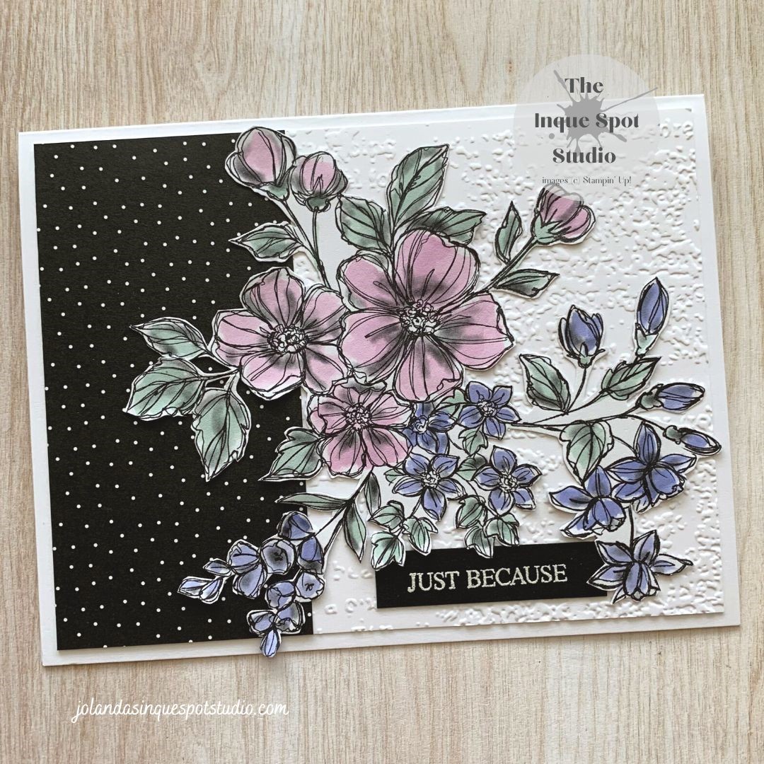 A color challenge deadline is approaching, Just Add Ink (#613)…such a pretty combination, Fresh Freesia (soft purple), Starry Sky (vibrant blue) and Mint Macaron (lovely shade of green). But what to do with them? I pulled out the super pretty Black and White Perfectly Penciled Designer Series Paper and opted to watercolor one of theContinue reading “Perfectly Penciled – Just Because its your Birthday”