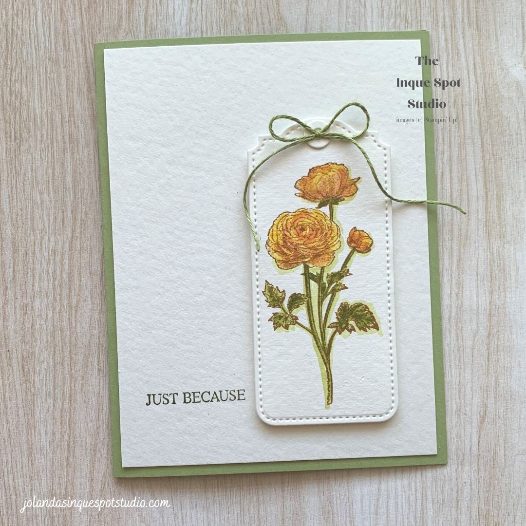 Running a little behind on a few challenges and deadlines are quickly approaching… Here we go! Case-ing Tuesday Facebook Challenge (#346) for the Sketch. Principal Colors were suggested by the TGIF Challenge (#358) and Inspiration from the Stampin’ Up! Only Challenge (#296) for the Flowers, adding the Green, emphasizing the Yellow and picking up onContinue reading “Ranunculus Romance – Hello”