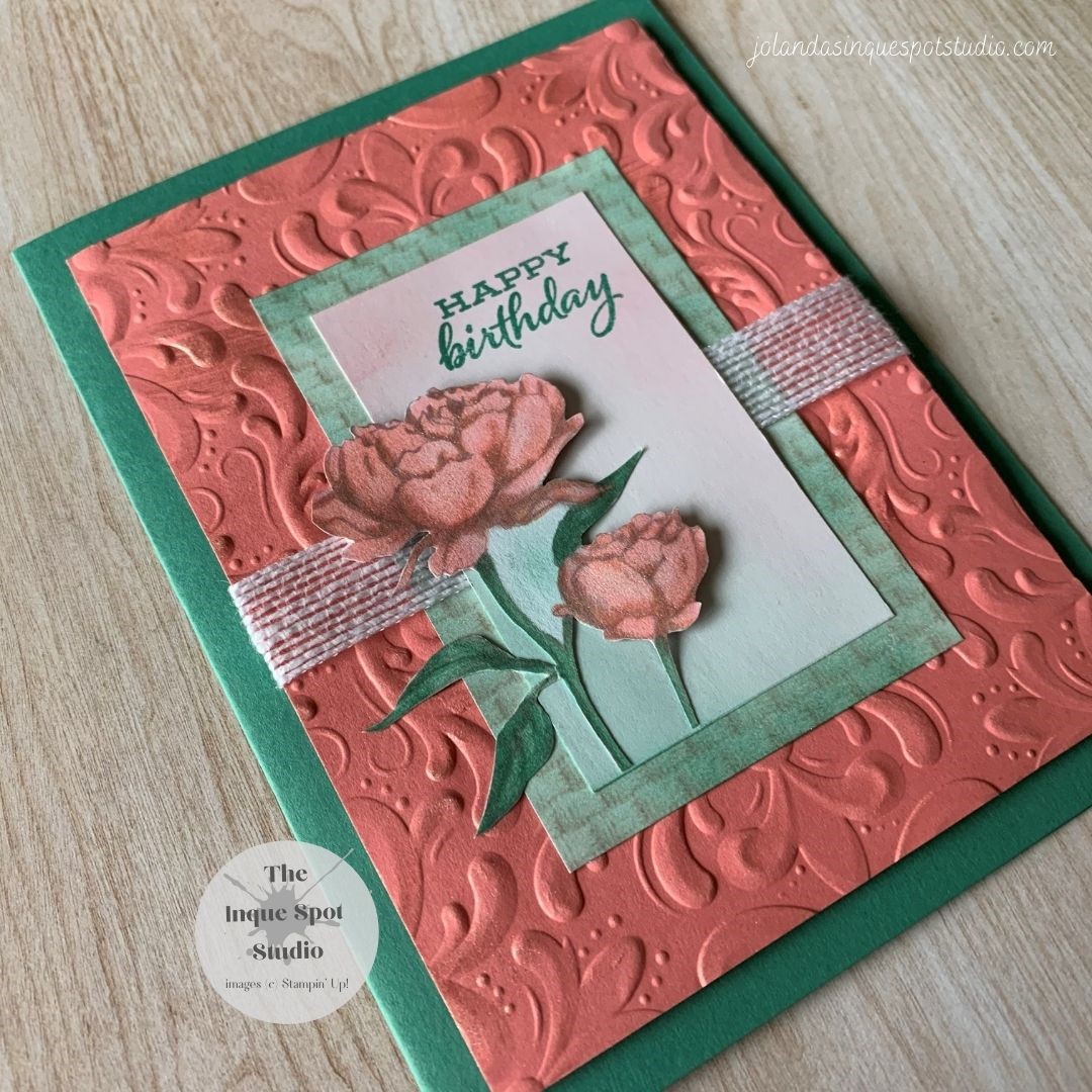 Hi Everyone! It is Tuesday and I am on the ball. I am working with the Case-ing Tuesday #286 Challenge. I flipped the Sketch 90 degrees and altered a few of the measurements: Basic White rectangle (1¾” x 3”) Mat (DSP) rectangle (2¼” x 3½”) Panel (Embossed) rectangle (3¾” x 5”) Standard Card Base (4¼”Continue reading “Four Season Floral – Happy Birthday”