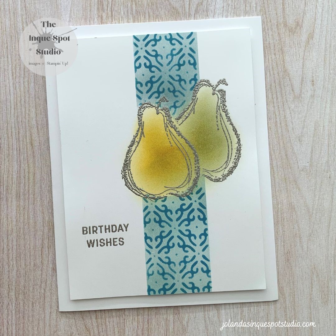 Welcome back! A late post, a busy day. Had a great class and now I have time to play… A couple of food related challenges are floating about in blog land, so I pulled out one of my favorite retired stamp sets, Infinite Goodness. Paper Players (#649) for a CAS (clean and simple) Bon AppetitContinue reading “Pear Pair Perfection – Birthday Wishes”