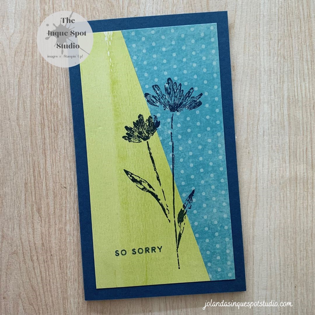 Hi! Spent the day with Stampin’ Up! and the Creativity Now Seminar…very inspirational and I will share more in days to come. However, I am playing with a few challenges as deadlines are looming and I had some fun creating this ultra simple stamped card. For: Double Trouble (#141) for the Anything Goes Slim LineContinue reading “Inked & Tiled – So Sorry”
