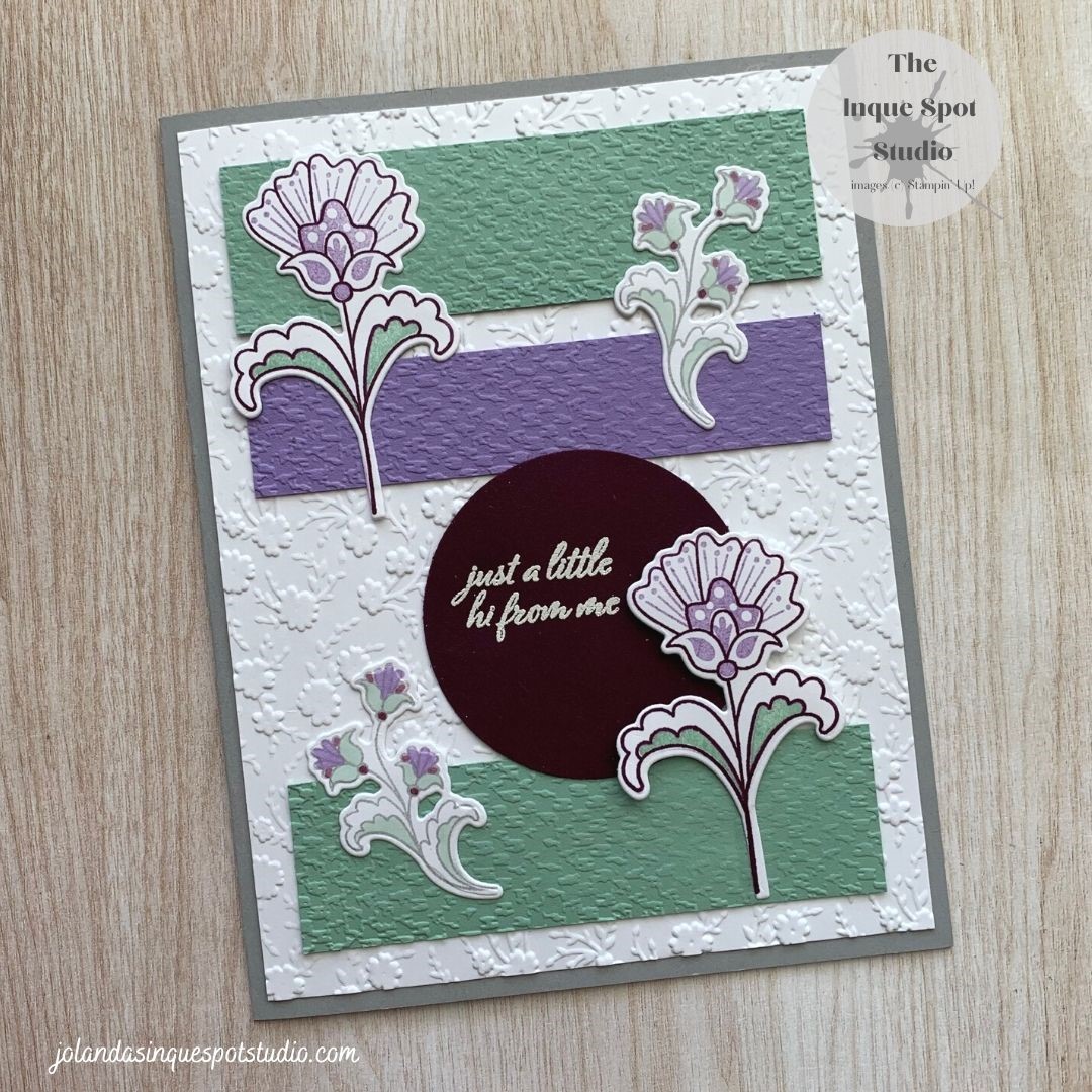 Case-ing Tuesday Facebook Challenge (#345) and pairing it with the Facebook COLOUR INKspiration Challenge (#116) for a sweet Spring Floral Hello card. Here is the result: Steps: Card Base: (8½” x 5½” scored at 4¼”) Smoky Slate cardstock. Background Panel: (4” x 5¼”) Basic White cardstock dry-embossed with the Ornate Floral 3D Embossing Folder. HorizontalContinue reading “Batik Boutique – Spring Floral Hello”