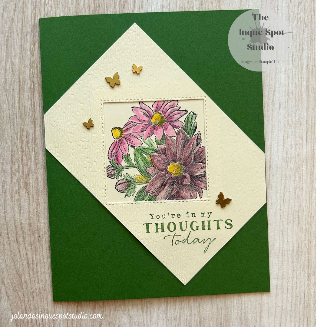 Welcome back! I snuck in another card. Using what was still on my desk and a scrap I found when cleaning up. Playing with the Facebook Colour INKspiration (#161) and Atlantic Heart’s (#569) sketch challenges. Here is the result: Steps: The Floral image was adhered behind the tilted Frame Panel and several Brushed Brass ButterfliesContinue reading “Inspirational Sketches – You’re in my Thoughts”