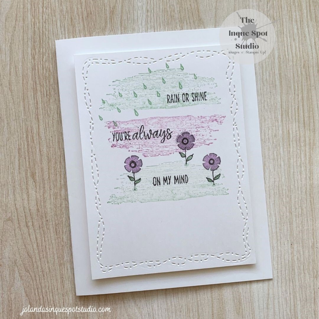 Still trying to catch up on challenges deadlines…another quick clean and simple card based on the CAS Colours & Sketches – Sketch (#467). Additional Inspiration: Theme: Inspiration Station (#28), Alphabet Letter (B), Time Out (#212), and Color: Color Hues (#39). Here is the result: Steps: Card Base: (8½” x 5½” scored at 4¼”) Basic WhiteContinue reading “Celebrate With Flowers – Rain or Shine”