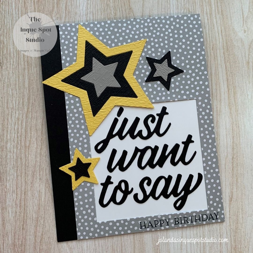 Who is a star in your life? Celebrate them in a big way… Inspiration from the following: SKETCH: Sunday Sketch Challenges (#260); COLOR: Color Throw Down (#650); and THEME: Seize The Birthday Challenges (#218) Here is the result: Steps: DSP Panel: (3¾” x 5½”) Neutrals Family Designer Series Paper Stack (retired Smoky Slate Dotted pattern).Continue reading “Just Want to Say – Happy Birthday”