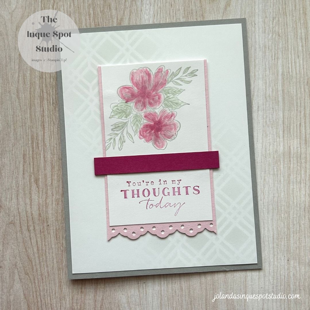 Welcome to Sunday and the newest Paper Players (#676) challenge. LeAnne has given us a very pretty set of colors to work with this week. I picked an image from the new Thoughtful Expressions stamp set and the Freshly Made (#622) sketch to create my card. I tried a little water coloring with Wink ofContinue reading “Thoughtful Expressions”