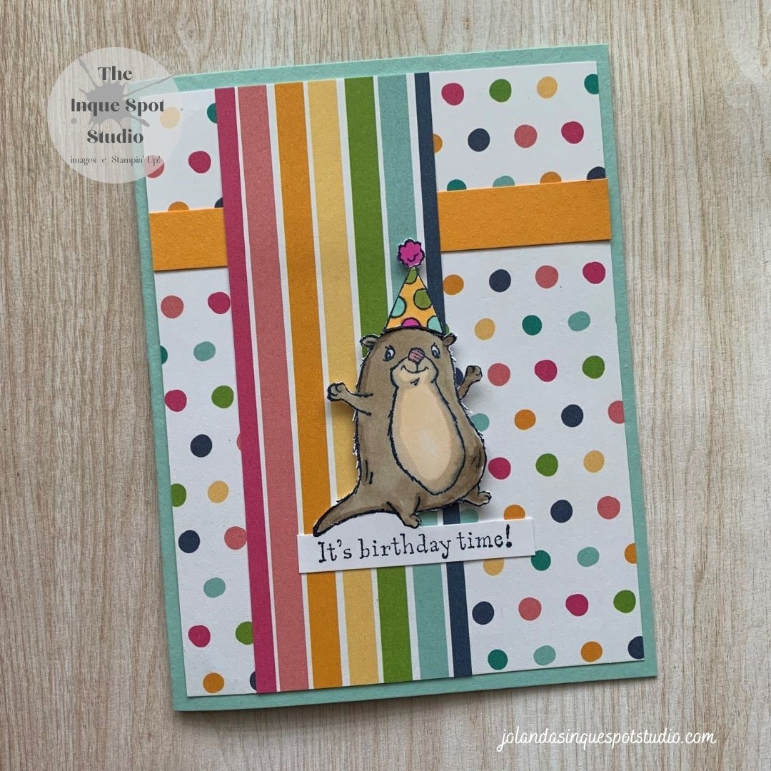 Our current challenge at CARDZ 4 GUYZ (#287) is to have fun with Spots and/or Stripes. With the 2022 Occasions Mini Catalog and Sale-a-bration Brochure launching this month, there are a lot of great new options… I selected to use the new FREE Sale-a-bration Sunshine & Rainbows Designer Series Paper pack for the delightfully funContinue reading “Awesome Otters – It’s Birthday Time”