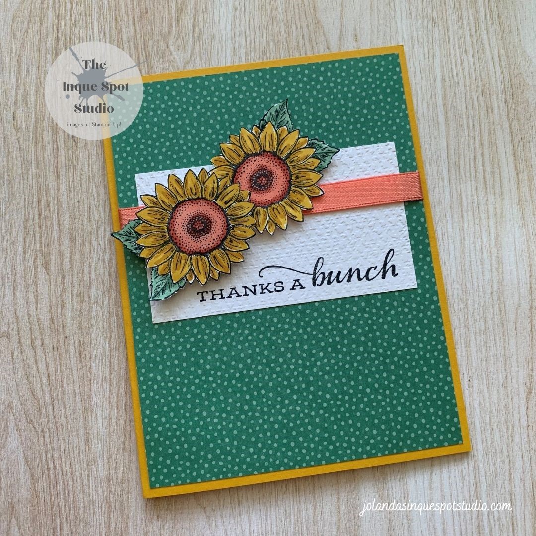 My take on this week’s Sunday Sketch Challenge – SS005. The choice of stamp set – Celebrate Sunflowers was influenced by the Color Challenge presented by Hand Stamped Sentiments (#366). Here is the result: Steps: Focal Image: Sunflowers. The smaller Sunflower image was stamped twice on to a scrap of Basic White cardstock using MementoContinue reading “Celebrate Sunflowers – Thanks a Bunch”