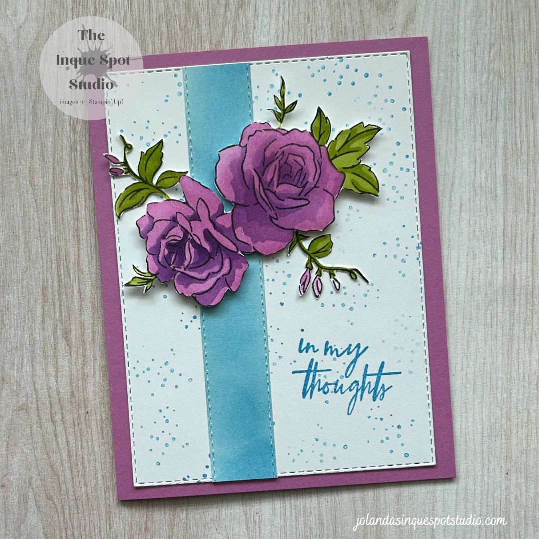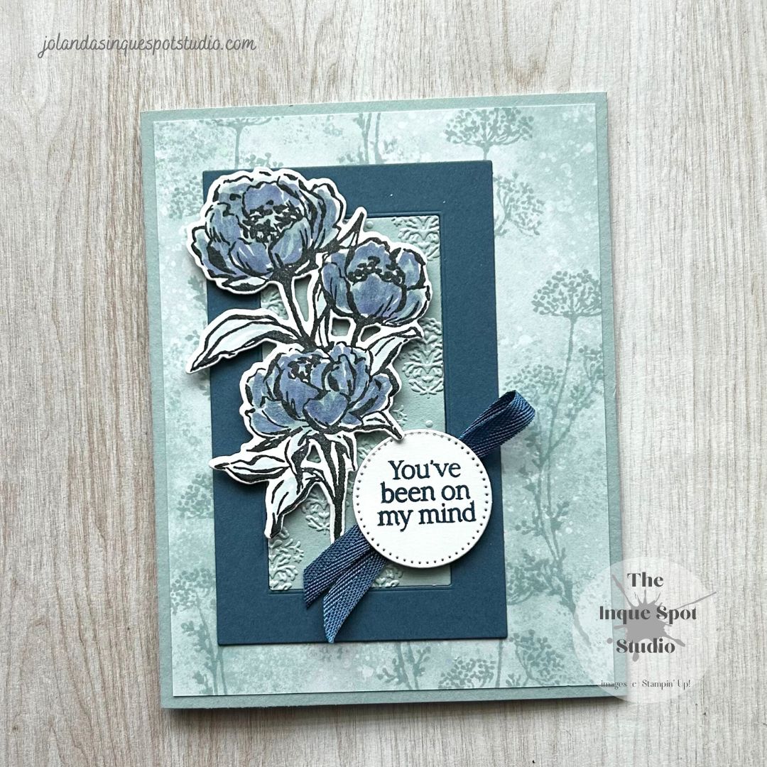 Got together with a new friend and we did a shoebox swap. This is where we each create a card, add the supplies, swap boxes and create. I designed my card for Stampin’ Up!’s Creativity Challenge for May: Recreate a Suite card in a different color. I created a hybrid A2 card from two SlimlineContinue reading “Gallery Blooms – On My Mind”