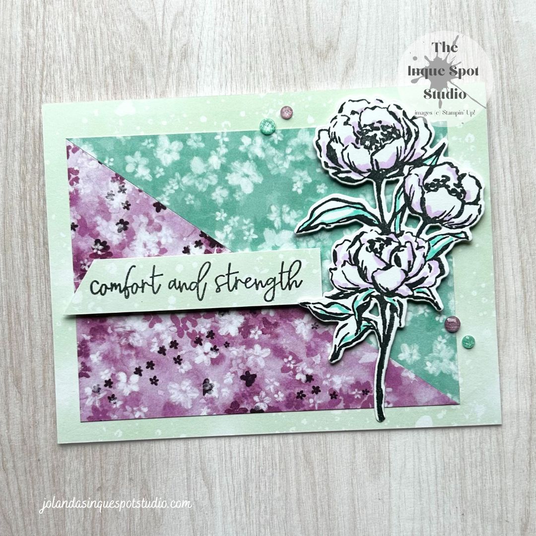 Design Team Time: Combining the Hand Stamped Sentiments (#463) Colors with the Facebook Case-ing Tuesday (#512) Sketch. Today? The card can be found on page 58 of the May 2025 – Apr 2026 Annual Catalog. I am also sharing this card with Heart’s Quest Celebration of Love (#2025-05) Sympathy theme. Here is the result: Steps:Continue reading “Gallery Blooms – Comfort & Strength”