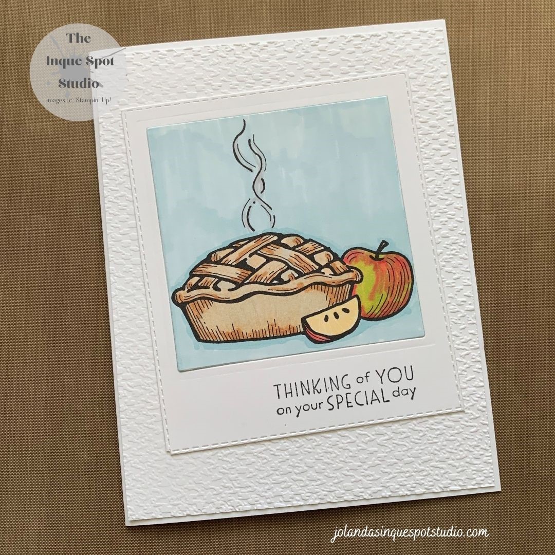 Popping in for a quick post. Getting ready for today’s class and had an idea that just needed to be tried. Theme: CAS on Friday (#205) and Style: CASology (#391). Stampin’ Up! has released a Digital Download of FREE images. UNITED THROUGH CREATIVITY. You can find it at my on-line store. And this is theContinue reading “Apple Pie = Special Day”