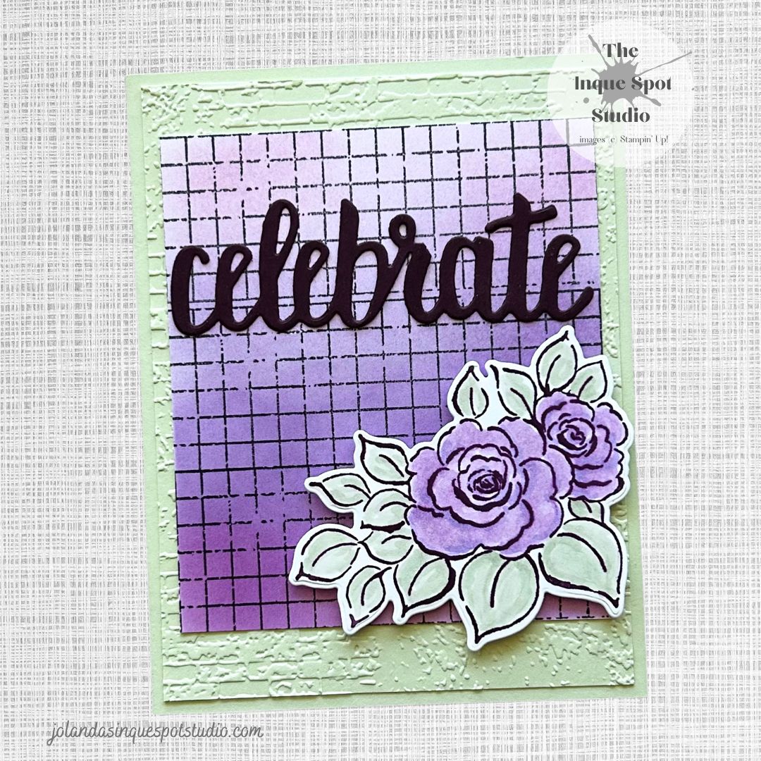 Welcome back! Friday, and I am wondering where the week went… A few challenges mashed up for a pretty birthday card. The Flower Challenge (#107) adding some purple; AAA Birthday (#78) adding an ombre effect; Moving Along with the Times (#182) to highlight the sentiment; and sharing with Ellibelle’s Garden Party (#8) as flowers surelyContinue reading “Charming Day – Celebrate”