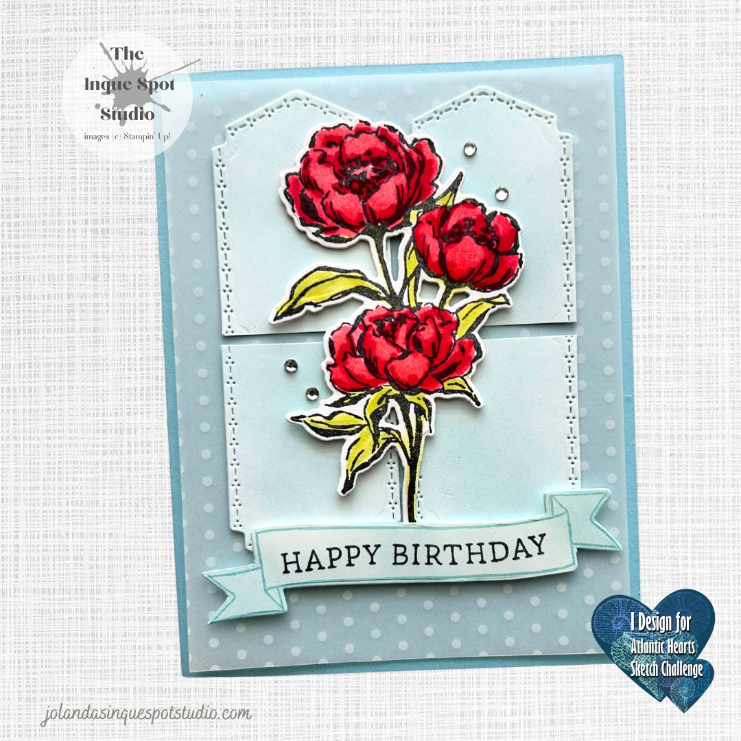 Design Team Time for the Atlantic Hearts Sketch Challenge (#657). Lots of layers, lots of possibilities. My design was influenced by: Inspiration Station (#79) for both the florals and the colors. I made My Mark for Addicted to Stamps & More (#506) by using both Blending Brushes and Stampin’ Blends Markers for my coloring techniques.Continue reading “Gallery Blooms – Happy Birthday”