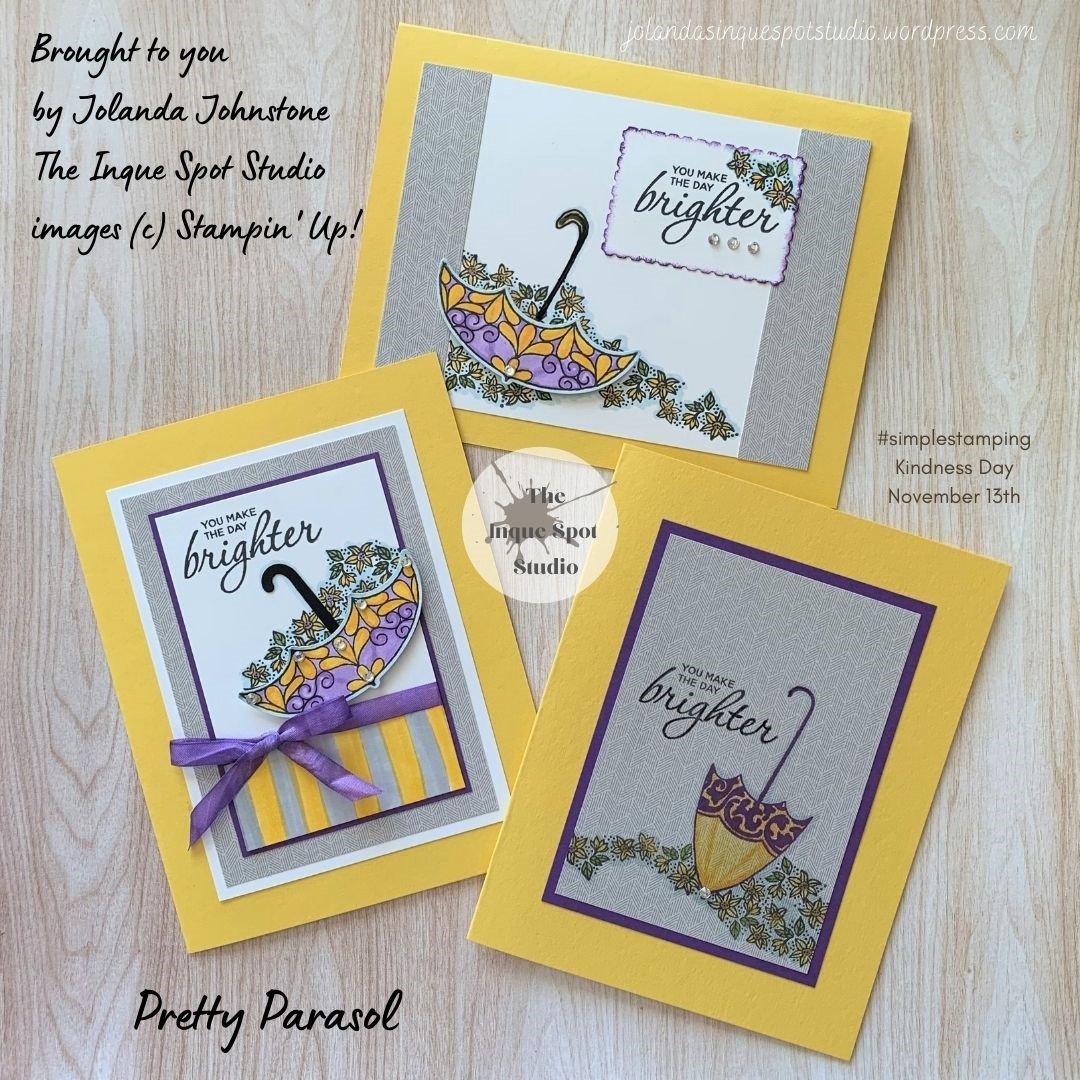 Friday Simple Stamping – Kindness Day – November 13, 2020 Guess what! It is Kindness Day, today. I wanted to create something bright and cheery to spread a little kindness… The featured stamp set is Pretty Parasol and the sentiment: You Make the Day Brighter. The color palette is yellow, purple and gray. Easy TheContinue reading “Pretty Parasol”