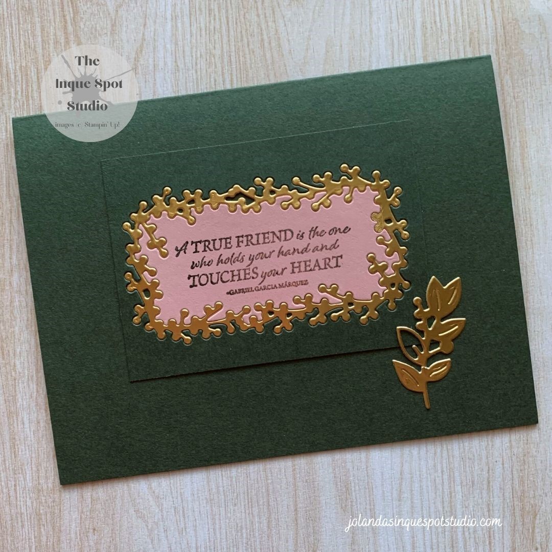 Sometimes you just need a card that expresses how you feel and the message is the center piece. I picked the sketch layout from the “Clean Team” over at Freshly Made Sketches (Challenge #511) asking you to keep your card clean and fresh. The colors suggested by the Team over at Just Add Ink (ChallengeContinue reading “A True Friend Touches Your Heart”